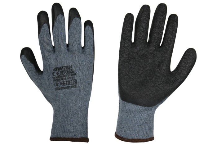 A szürke poliészter és pamut kesztyűk fekete porózus latex réteggel vannak bevonva. Általános és gépészeti munkákhoz az építőiparban és a közlekedési ágazatban fogják használni. Kopás- és szakadásállóság jellemzi őket.