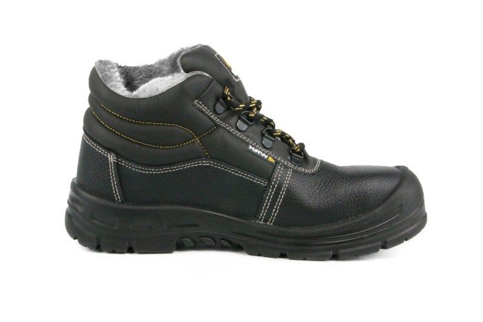 A cipő felsőrésze kiváló minőségű fekete szarvasmarha hasított bőrből készült , amely garantálja a tartósságot és a mechanikai sérülésekkel szembeni ellenállást. A Solaris Winter S1 cipő műszőrme béléssel van felszerelve, amely kiváló hőszigetelést biztosít a hidegebb napokon is. A felsőrészen narancssárga szálak láthatók, amelyek modern megjelenést kölcsönöznek a cipőknek. A cipő talpa